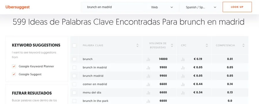 Debido a que Ubersuggest utiliza la API de autocompletar de Google, esta herramienta es ideal para profesionales de SEO jóvenes que buscan una forma rápida de aprender cómo funciona la búsqueda.