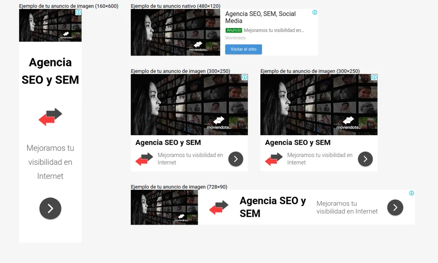La red de display permite poner anuncios gráficos en páginas web, blogs, aplicaciones móviles y correos electrónicos de clientes potenciales. La red de display tiene costes CPC mucho más bajos que los costes de búsqueda, lo que nos abre la posibilidad de captar más clientes que sólo con la red de búsqueda.