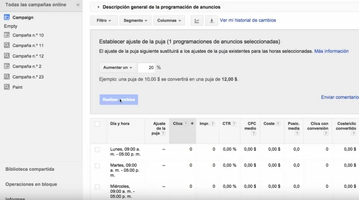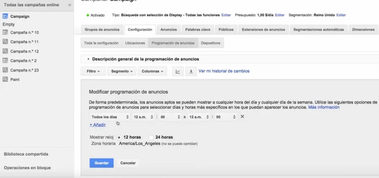 Con esto ya estás listo para crear una programación de anuncios personalizada para tu campaña de adwords.